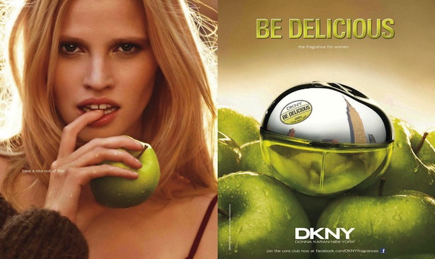 Reklama perfum DKNY Be Delicious z udziałem modelki Lary Stone i modela Tobiasa Sorensena.